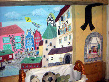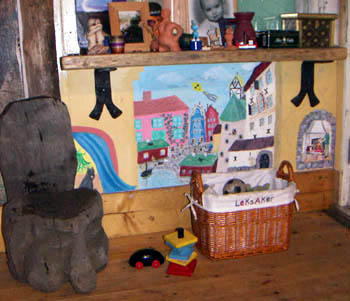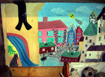 Till vänster; Den andra halvan med Agnes katt och hus. De lekande